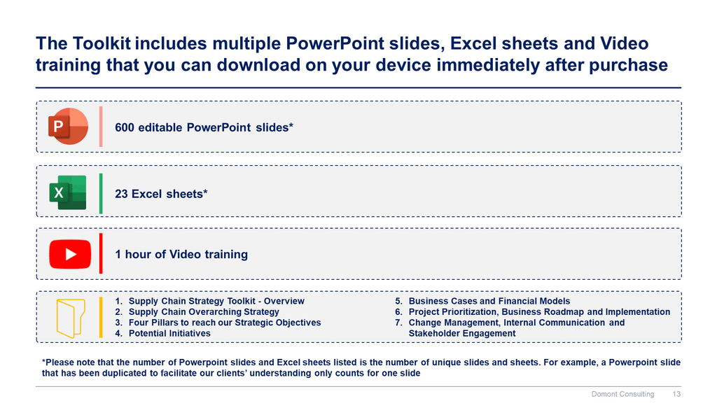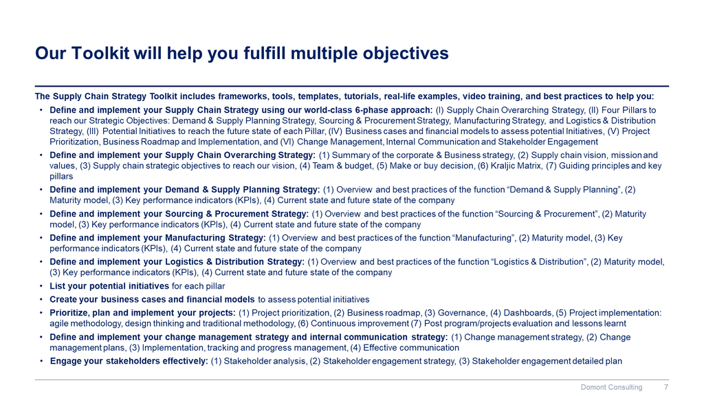 Really a timesaver for consultants. It is very resourceful and enlightening. I was amazed at the quality and concise content. Plus if you know the value of such, you would know that you have received more bang for your buck than you would find elsewhere. Overall I am delighted and I know this will improve our consulting business in more ways than one. Thanks Aurelien and the Domont Team