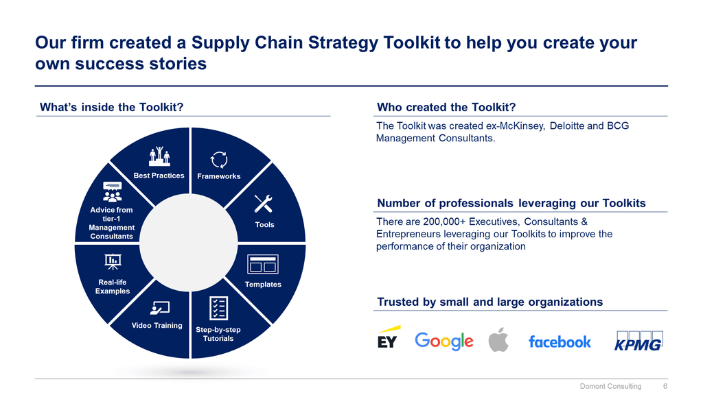Improve the growth & efficiency of your organization by leveraging Management Consulting Toolkits created by ex-McKinsey, Deloitte & BCG Consultants.