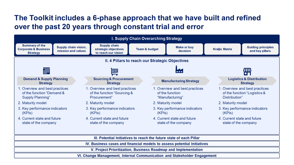This Toolkit was created by ex-McKinsey, Deloitte and BCG Management Consultants specialized in Supply Chain Management, after more than 5,000 hours of work. It is considered the world's best & most comprehensive Supply Chain Strategy Toolkit. It includes all the Frameworks, Best Practices & Templates required to improve your skills and the supply chain capability of your organization. Build success stories such as Walmart, Amazon and Zara who all gain a competitive advantage through supply chain improvements.