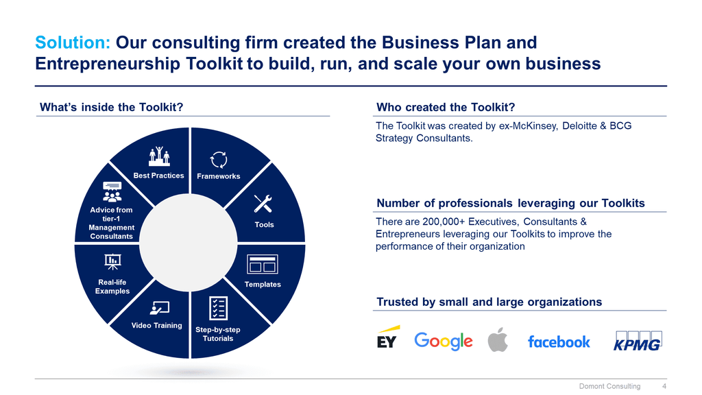 That’s why in 2012, I teamed up with other ex-McKinsey, Deloitte and BCG Consultants to create comprehensive Management Consulting Toolkits designed to solve your business problems and improve the growth and efficiency of your organization!