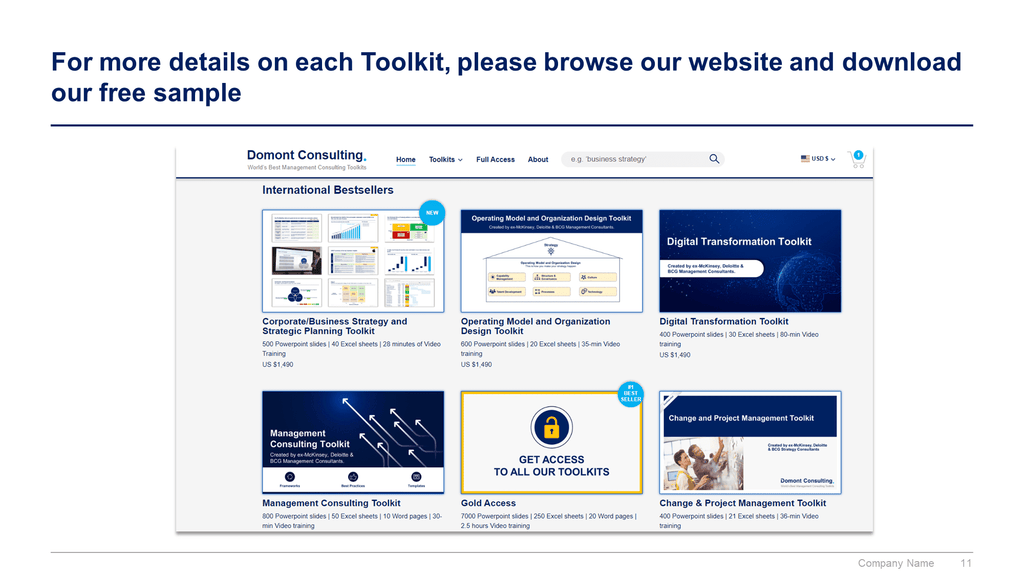 Don't reinvent the wheel. We have already worked 30,000+ hours over the past 10 years to create all the Management Consulting Toolkits you need.